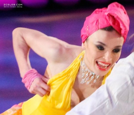 Сексапильная солистка «ВИА Гры» Надежда Грановская случайно засветила голую грудь оконфузилась на съемках шоу «Лед и пламень» в 2010 году.