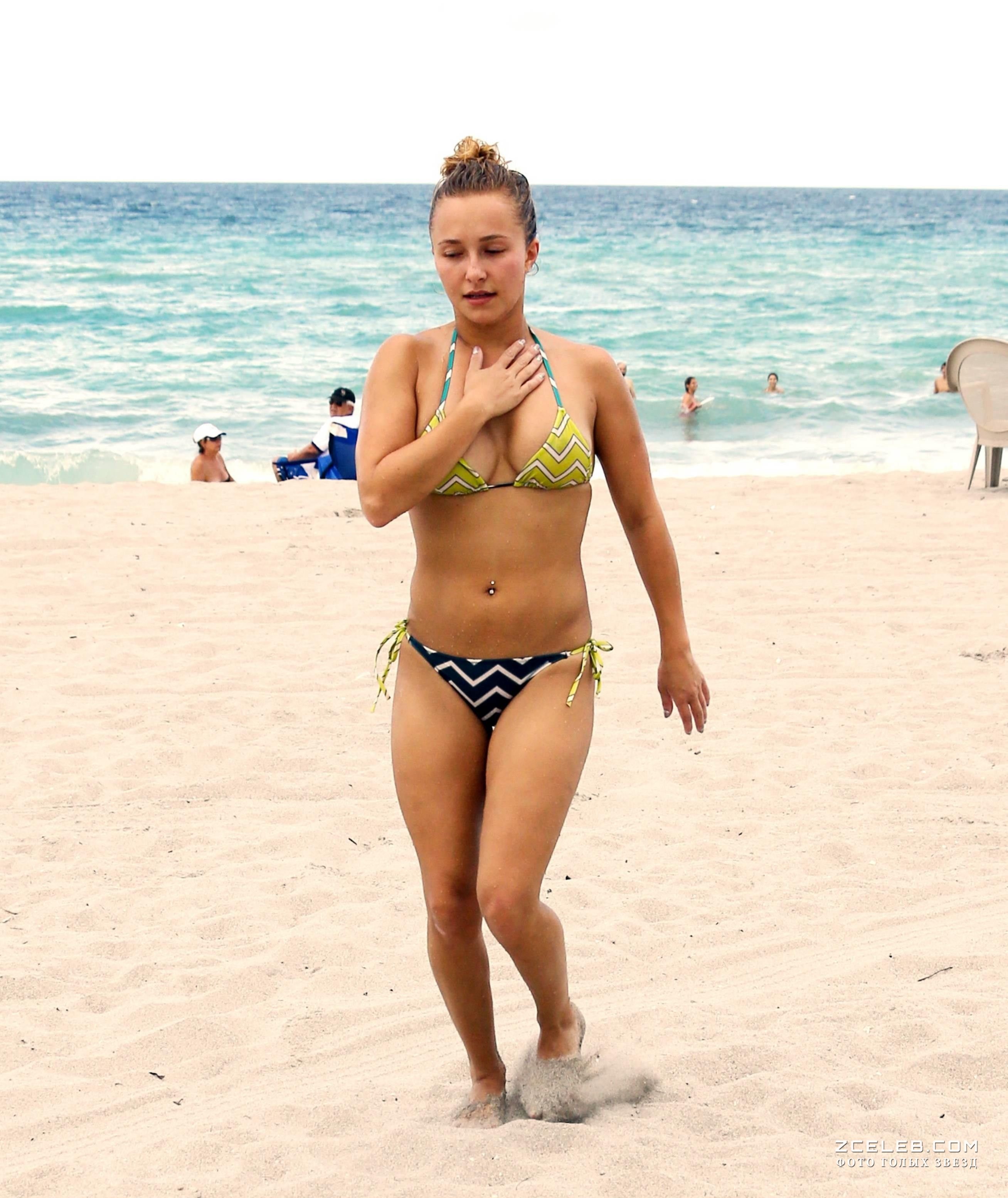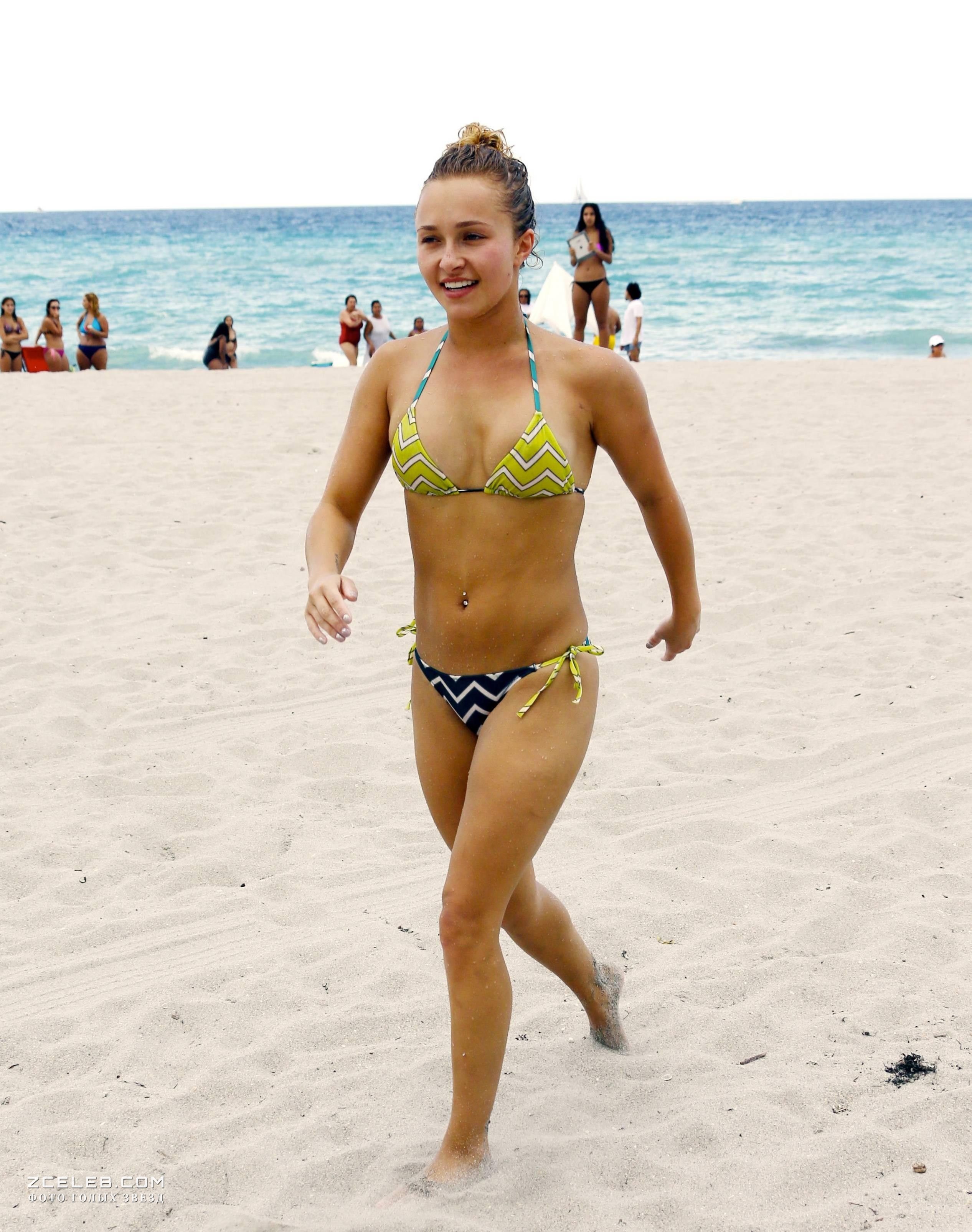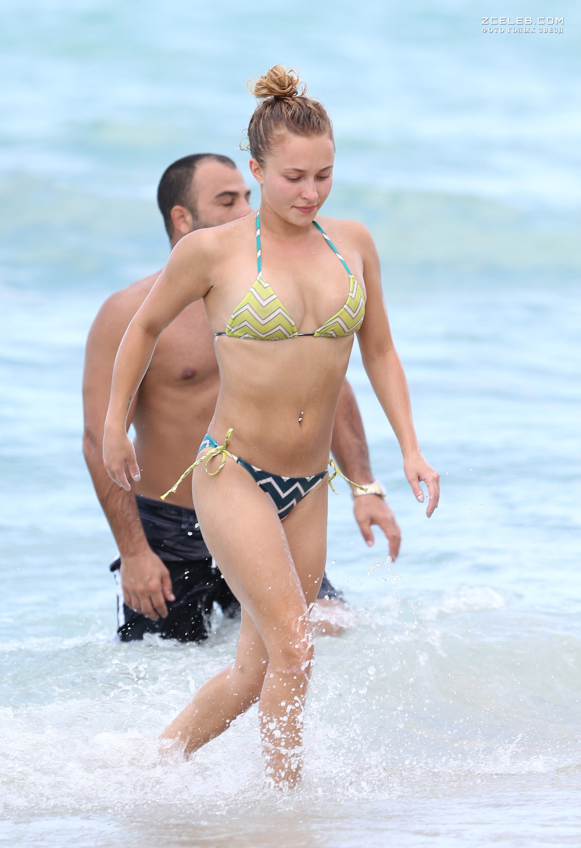 Новая упругая грудь Хайден Панеттьери в бикини на пляже в Майами, 30.03.2013