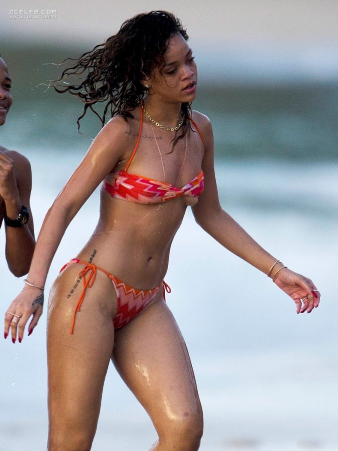 Горячая Рианна в купальнике на пляже в Барбадосе 29 декабря 2011 года.
