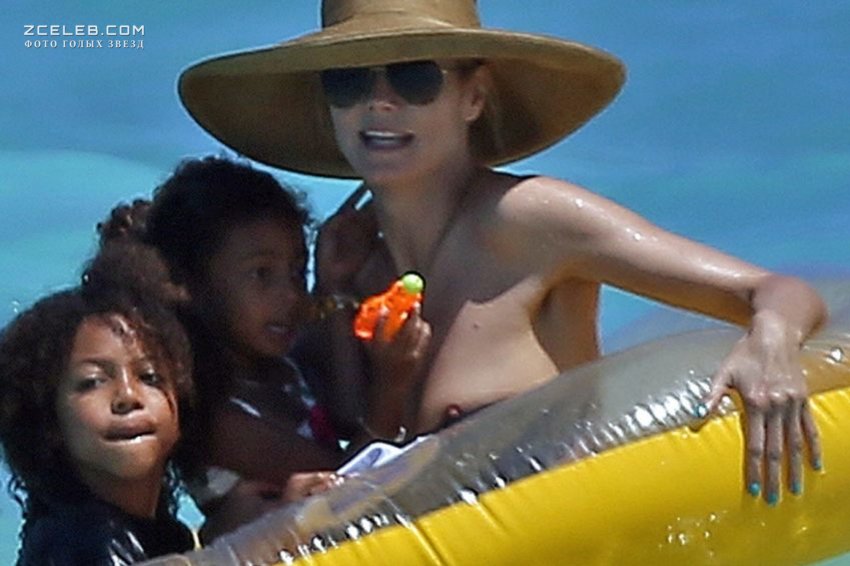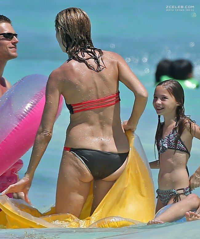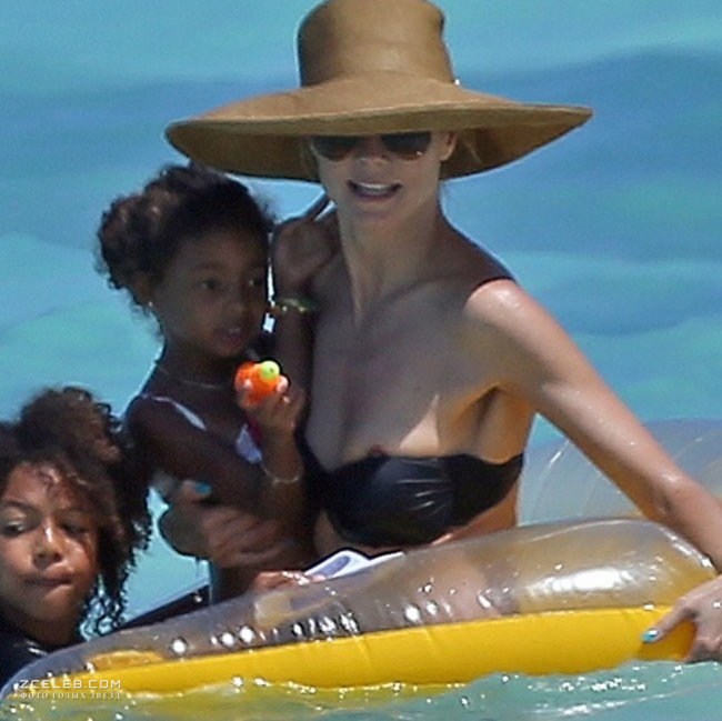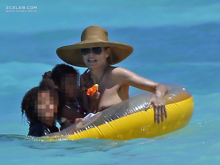 У Хайди Клум сполз купальник на Багамах со своими детьми в марте 2014 года.