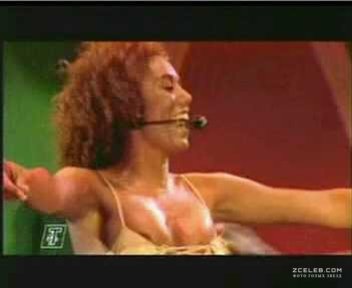 Красотка Мелани Браун засветила грудь на выступлении The Spice Girls. Вот к каким приятным последствиям приводят тесные вечерние платья, плотно облегающие изящные фигурки.