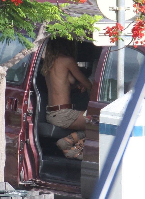 Жизель Бюндхен переодеватся во время съемки на острове Сен-Бартелеми, 2010